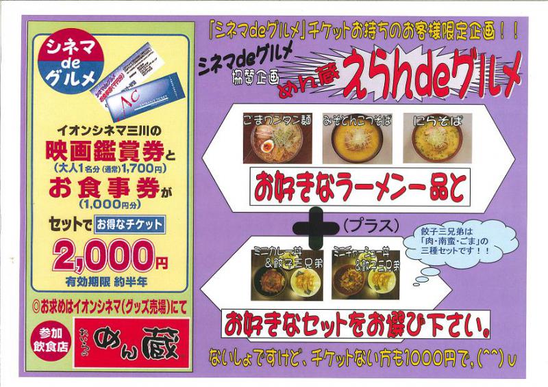 ▼シネマdeグルメ〜イオン三川店