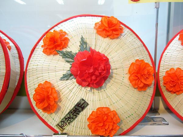 一針一針ていねいに仕上げられた菅笠は出荷され、花笠祭りの主役となるのです。