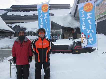 今日は飯豊町観光協会の方がスノーモービルを持って