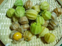 お隣さんから食用のほおずきをいただきました。