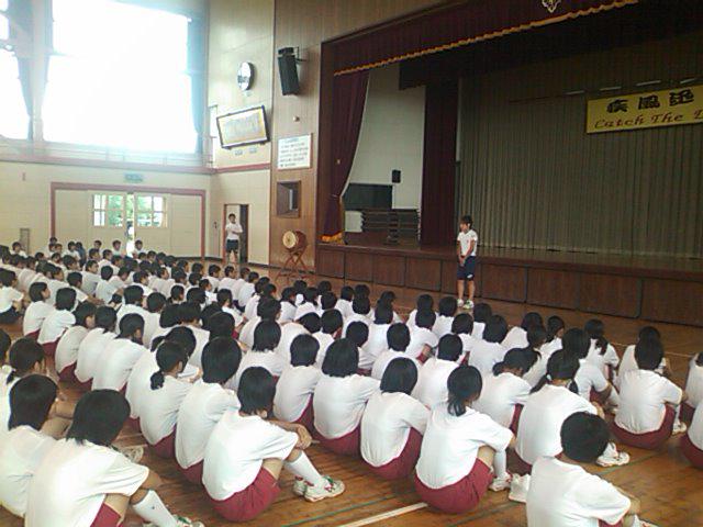 体育館で役員等を決めています。すでに太鼓が持ち込まれています。