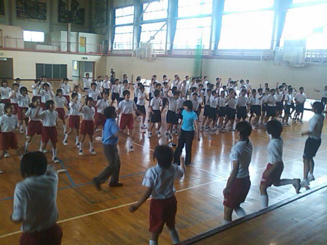 上級生が1年生に応援の仕方を伝授。ラッセーラーのかけ声が響きます。