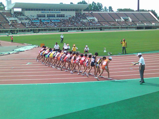 女子1500m。南中ユニフォームの二人がスタートラインにつきます。がんばれ!