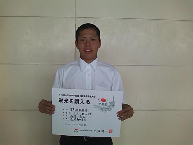 第62回山形県中学校陸上競技選手権大会 男子AB円盤投 第1位36m45。横浜で行われる全国大会では入賞できるように頑張ります!