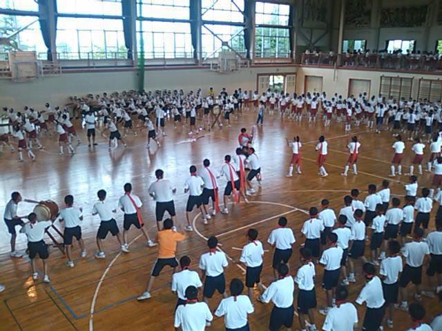 残念ながら天気は雨…。体育館での総練習です。今日はその様子の写真を何枚かアップできればと思います。