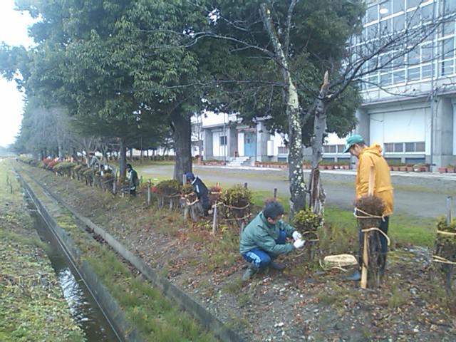 ▼環境整備部 雪囲い作業
