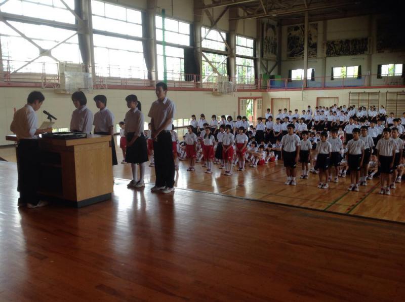 学芸委員会主催の学力アップ大作戦の表彰がありました。1位 2年3組 2位 1年1組 3位 1年4組、3年2組 3年4組