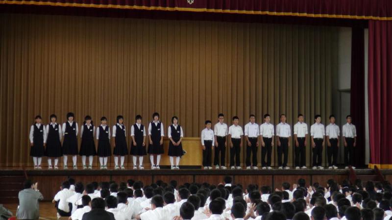 9月19日全校朝会にて、21日(日)の山形県駅伝大会に出場する男女チームの紹介が行われました。夏休みも運動会期間もずっと練習をつづけてきました。健闘を祈ります。