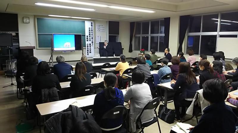 午後6時30分より、平成27年度学校保健委員会が開かれました。子どもの心に寄り添うというテーマで北海道教育大学の小野寺基史先生をお招きしてご講話をいただきました。