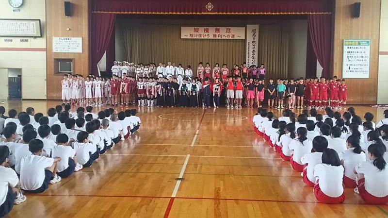 本校体育館にて明日、明後日に行われます中体連地区大会の壮行式が行われました。応援よろしくお願いします。