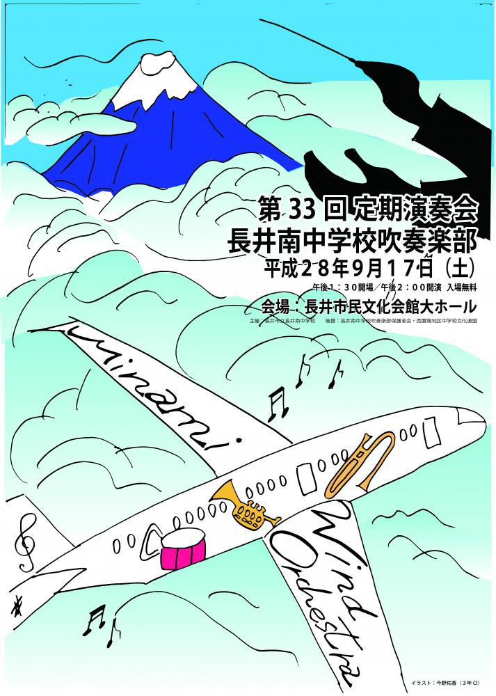 第33回長井市立長井南中学校定期演奏会が9月17日(土)午後2時から市民文化会館で行われます。ぜひおいでください。