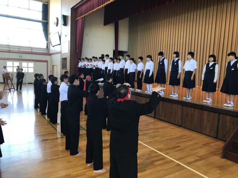 今週末に他の部より1週間早く行われる地区中学校総合体育大会陸上競技の壮行式が行われました。陸上部の皆さん頑張ってください。