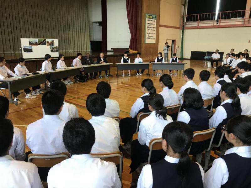 9/27 タンザニアの駐日 特命全権大使 マチアス チカウェ氏との交流会が行われました。本校出身で母親がタンザニア出身である鈴木智恵さんの少年弁論VTRを見て感想を述べ合いながら大使への質問を交えての交流会でした。