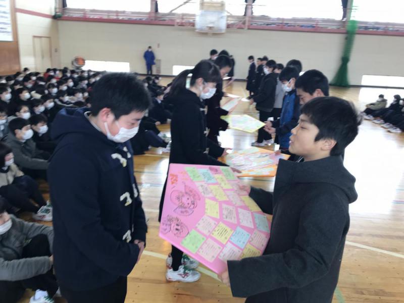 3年生に1、2年生から応援とメッセージを送る進路激励会が行われました。