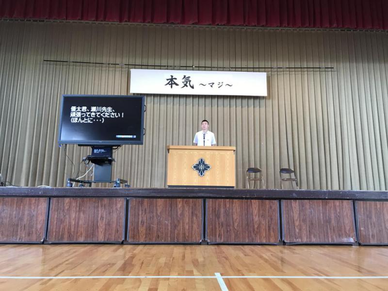 今日からタンザニアに長井市の使節団と一緒に本校から訪問する生徒会長の優太君と瀬川先生から意気込みを述べてもらいました。