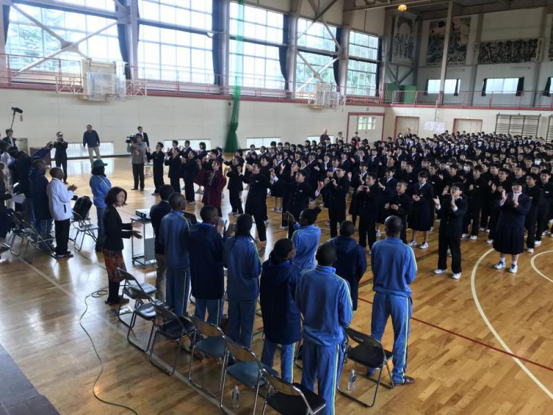 長井マラソンの感想では大変楽しく参加しましたとのこと。最後に応援団から激励応援を行いました。