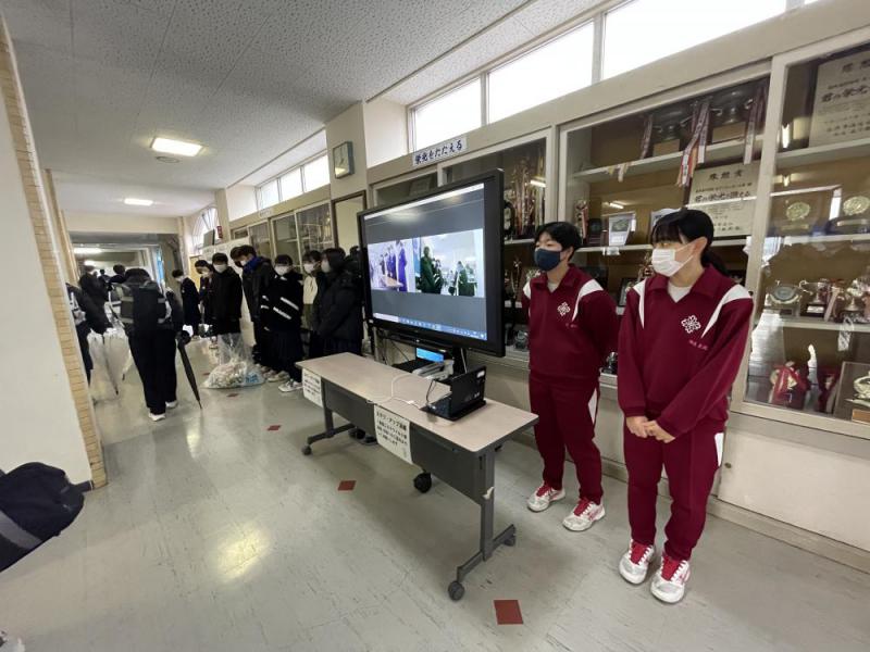 小国中学校とオンラインで結び朝のボランティア活動に取り組んでいます。
