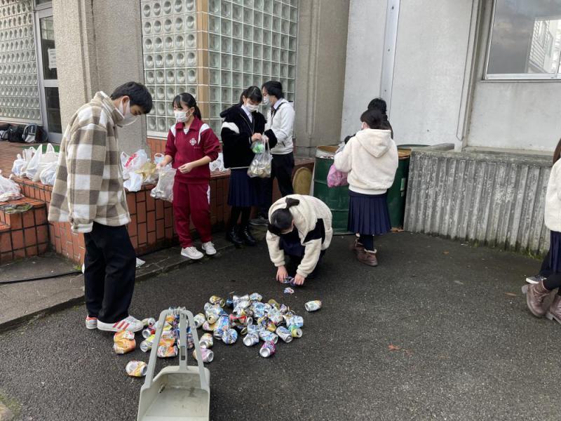 ボランティア委員会による空き缶回収も終盤を迎えています。
