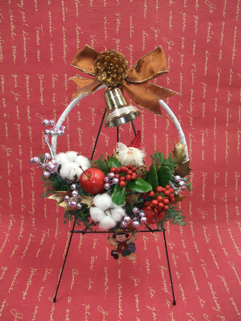 松ぼっくり、サンキライ、コットン、ベル、リボン。