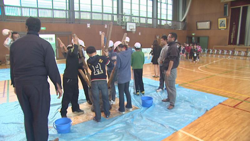 出来あがったもちは、お世話になった地域の人達と一緒に