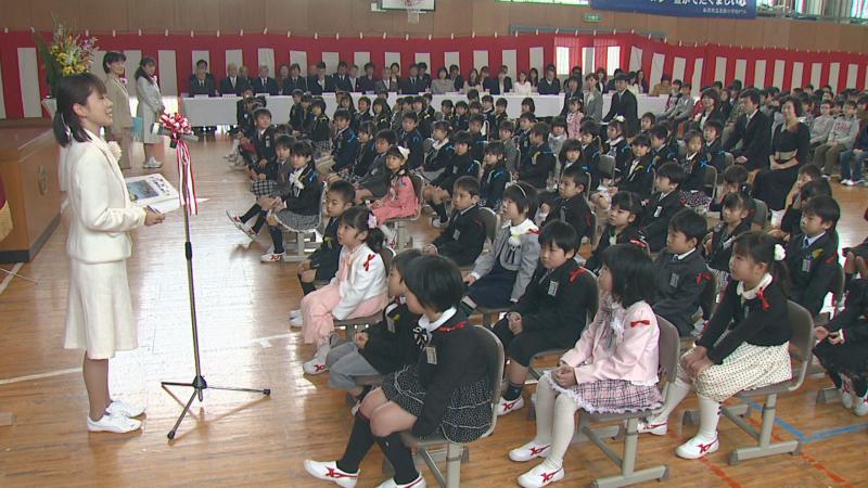 新1年生77人は 上級生、先生、地域の人達に温かく迎えられ