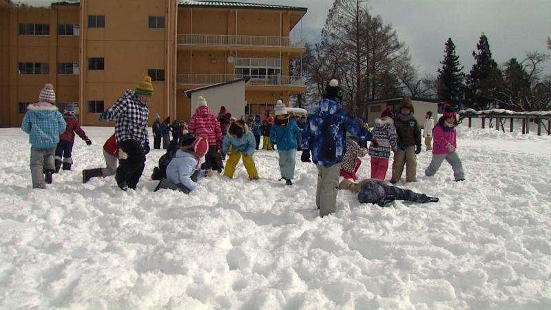 ▼3月1日から放送のみんなの世界は「漆山小・雪遊び集会」
