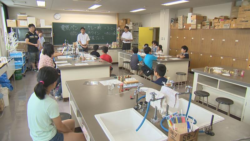 これは、理科が好きな子どもを育てようと、米沢市教育委員会が山形大学の協力を得て、小学生とその保護者を対象に行っている理科実験教室です。