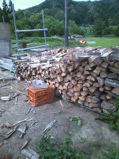 春先に 割った薪を やっと積み始めました。これは2割ぐらいです。あー先が長い作業です。