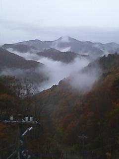 紅葉は 標高1000m付近が見ごろかな。宿の周りの紅葉は 終わりになったみたいかな。今日は雨模様です。予報は終日雨とのこと。