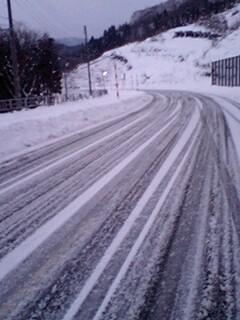 ここは 白布温泉まで あと7キロの地点にある舟坂峠と言う所です。6%の勾配の上り坂です。トンネルの手前で 撮影しました。本日は シャーベット状態です。ここの下りも 注意走行です。