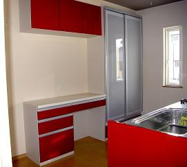流しに立つと背後に位置するカップボード。床から天井まで無駄なく使えます。これ一つで食器の収納は十分!後々、カップボードを買い足すことも必要なし。この収納能力はうれしい限り。