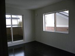 主寝室のフロアはぐっと落ち着いたダークブラウンにしました。フロアの色が違うだけでこんなに印象が違います。