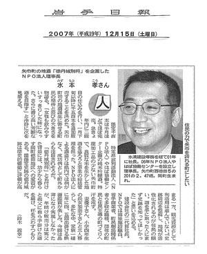 岩手日報 平成19年12月15日版に掲載