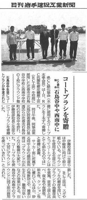 石鳥谷中学校と西南中学校にコートブラシを寄贈いたしました。