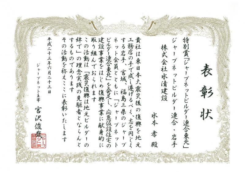 ▼ジャーブネットビルダー連合・岩手が表彰されました
