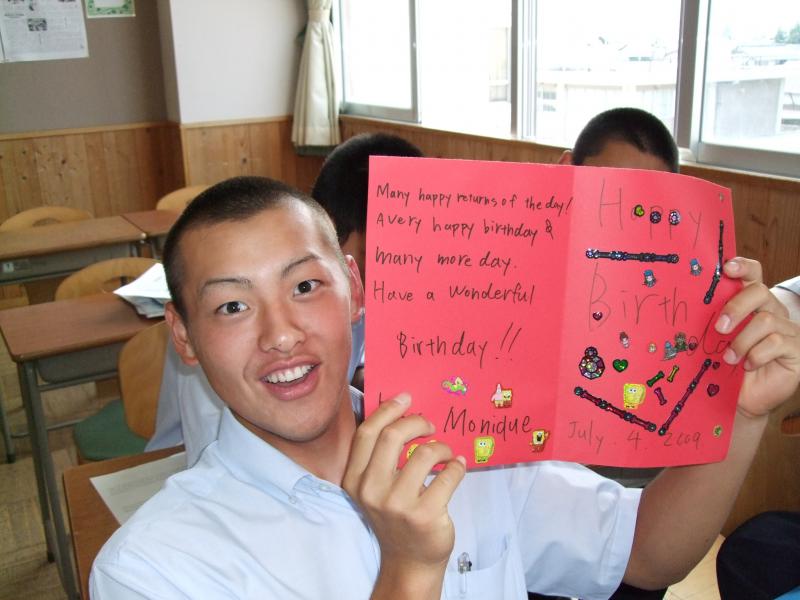 とにかく、今日のWritingクラスで生徒たちはGreeting Cardを作りました。面白かったと思った。来週から教科書のPart 2「Brian Comes To Japan」が始まります。