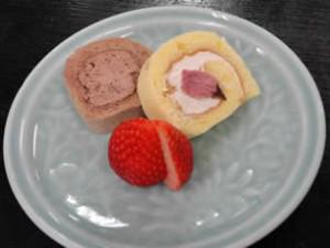地元のお豆腐屋さんが作った「豆腐入りのロールケーキ」を献立に取り入れました。