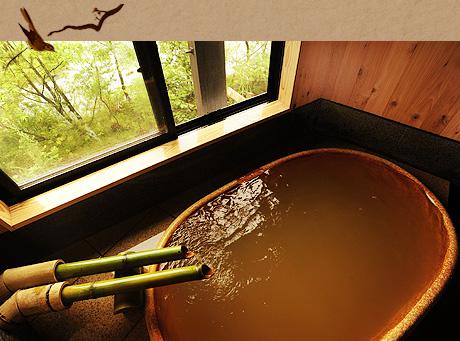 展望風呂で源泉掛け流しの湯をゆっくりのんびりお楽しみ下さい。