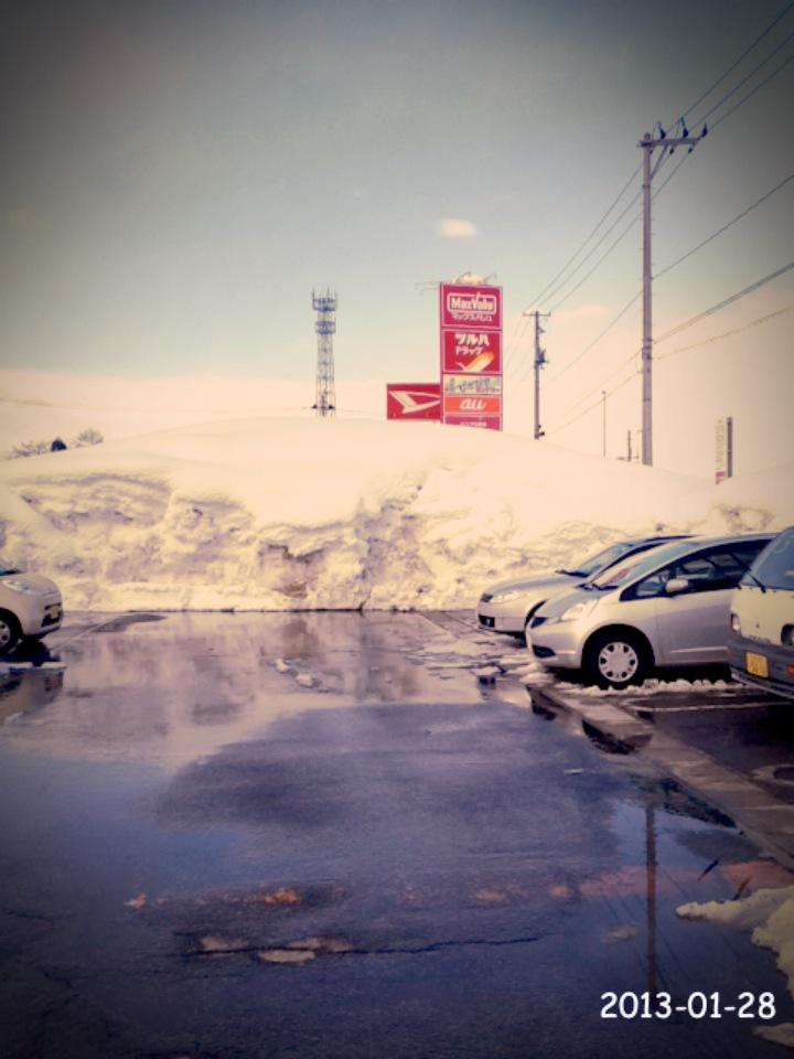 お昼ごはんを食べた後、見渡したら雪の山が出来てました。