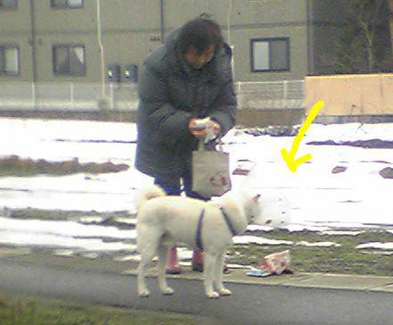 なんとも不思議な光景。犬に透明なプラスチックできたカバーをクビにつけています。なんのためでしょうか。