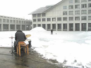 いつも図書館の机に陣取り、エスキース帳に、くしゃくしゃの文字やらドローイングを書きなぐっていた高木君の卒業制作は、池に張った氷の上、ずぶ濡れになりながら詠むポエトリー・リーディングだった。