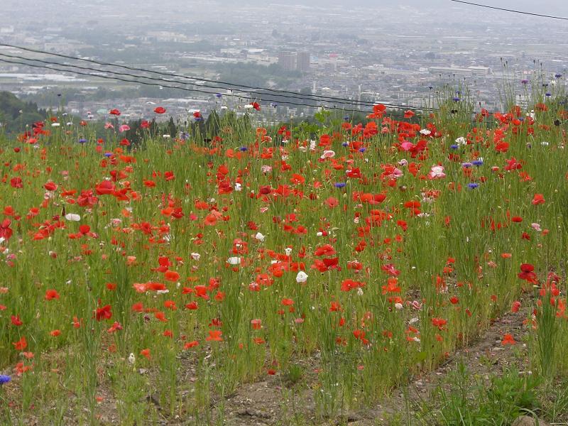 ポピーが一面に咲き乱れていて、その先には山形市内が広がっていました。