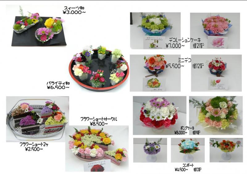ミニデコ5,500〜 ボンブケーキ8,000〜 コンポート4,500〜