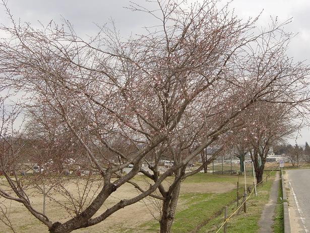 「久保の桜」の状況確認に出向いたのだが、不安定な天候が続いている状況からか、開花までには少々時間がかかりそうだ。ところが、小学校グランド添いのさくら並木は既に咲きはじめており、見学に来られている方々に少しは納得してもらえるかも知れない。18度以上の気温が後3日4日続けば、もしかしたら咲きはじめるかもしれないが、週間天気予報を見る限りでは少し難しいかも知れない。とは言え、自然が相手である。