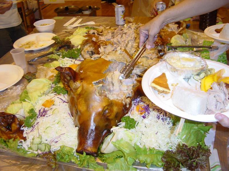 ◎豚丸焼き、グロテスクだがとても美味。写真をクリックしてじっくりどうぞ。