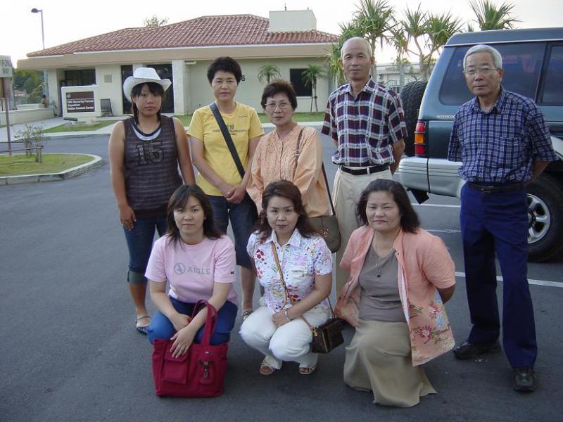 ◎写真は、嘉手納空軍基地前での1ショット(ホームステーでお世話いただい