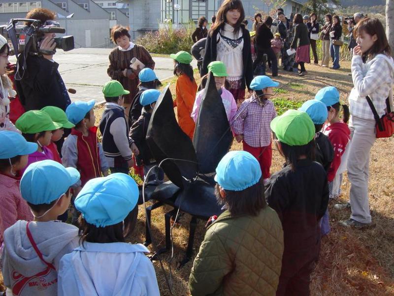 金属加工を施した作品であるがゆえに、園児には危険ではないかとの意見が保護者や大学側からあり、その安全策に対して、大学サイド、幼稚園、そして園児の保護者らとの打ち合わせを重ね、ようやく実現したのだそうだ。学生個々が責任を持ち、細心の注意はらうことや、過保護的環境だけでは危険余地は養われない等を説き、根気強く理解を求めていった結果なのだそうだ。そんな学生達をみて、「今はとても頼もしく思える」と担当の安部先生が笑顔で話してくれた。