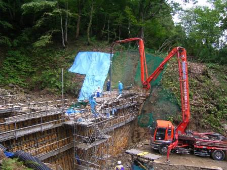 写真はコンクリートの打設の状況です。