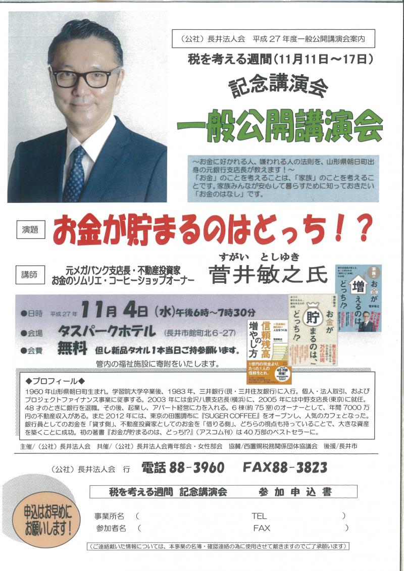 11月4日に「お金が貯まるのはどっち!?」の著者、菅井敏之氏をお迎えして講演会を開催致します。