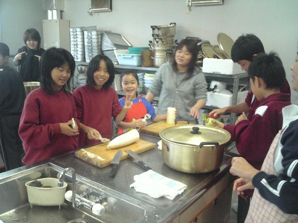 大会の反省会もかねて芋煮会をしました。今回は子供たちが大根の皮むきから一生懸命つくりましたね。とてもおいしい芋煮ができあがりましたね。ソフトバレーでは、お父さん、お母さんもハッスルし、中学生も参加してかなりもりあがりました。次の日にはかなり筋肉痛になったんじゃないですか。おいしい芋煮を食べた後は指導者も保護者もみんな参加して半面シングルスで汗をかき、日頃運動不足のお父さん、お母さんもがんばりました。中学生の皆さんもお手伝いありがとうございました。
